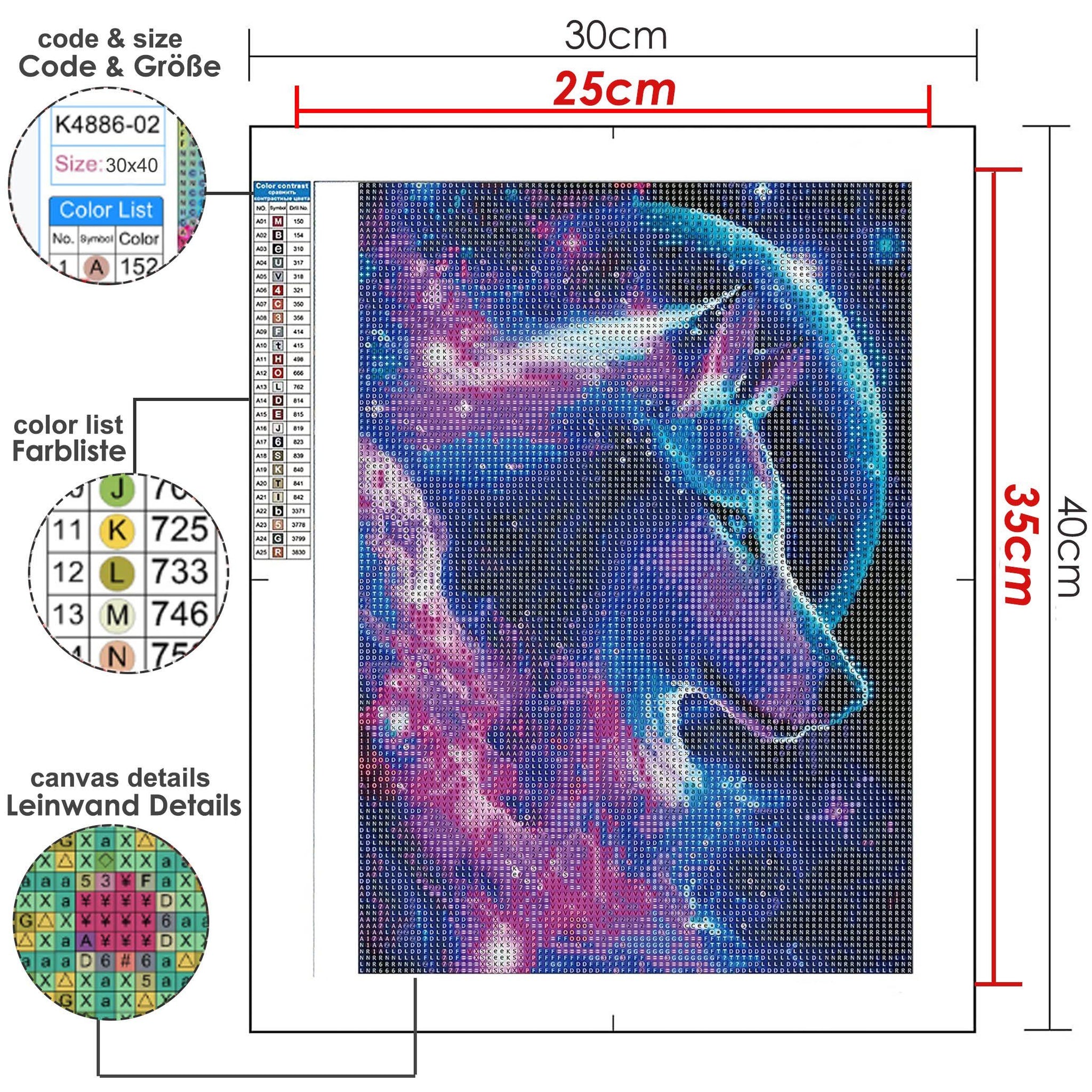 • Das set enthält 1 diamant painting bilder. Jedes Kit enthält eine Vollbohr-Leinwand, einzeln verpackte Diamont, einen Point-Diamantstift, eine Würfel-Diamantschale, Malschlamm.